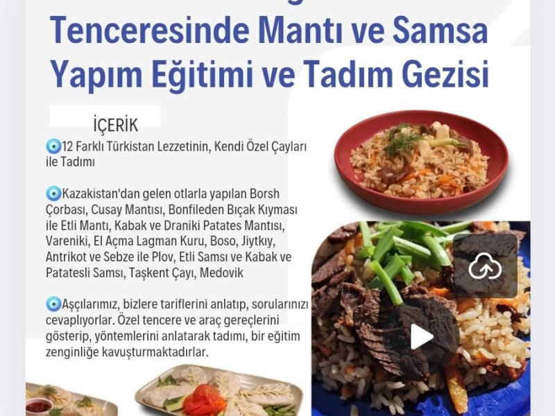 Türkistan Mutfağı Tadım Gezisi ve Katlı Buhar Tenceresinde Mantı ve Samsa Yapım Eğitimi